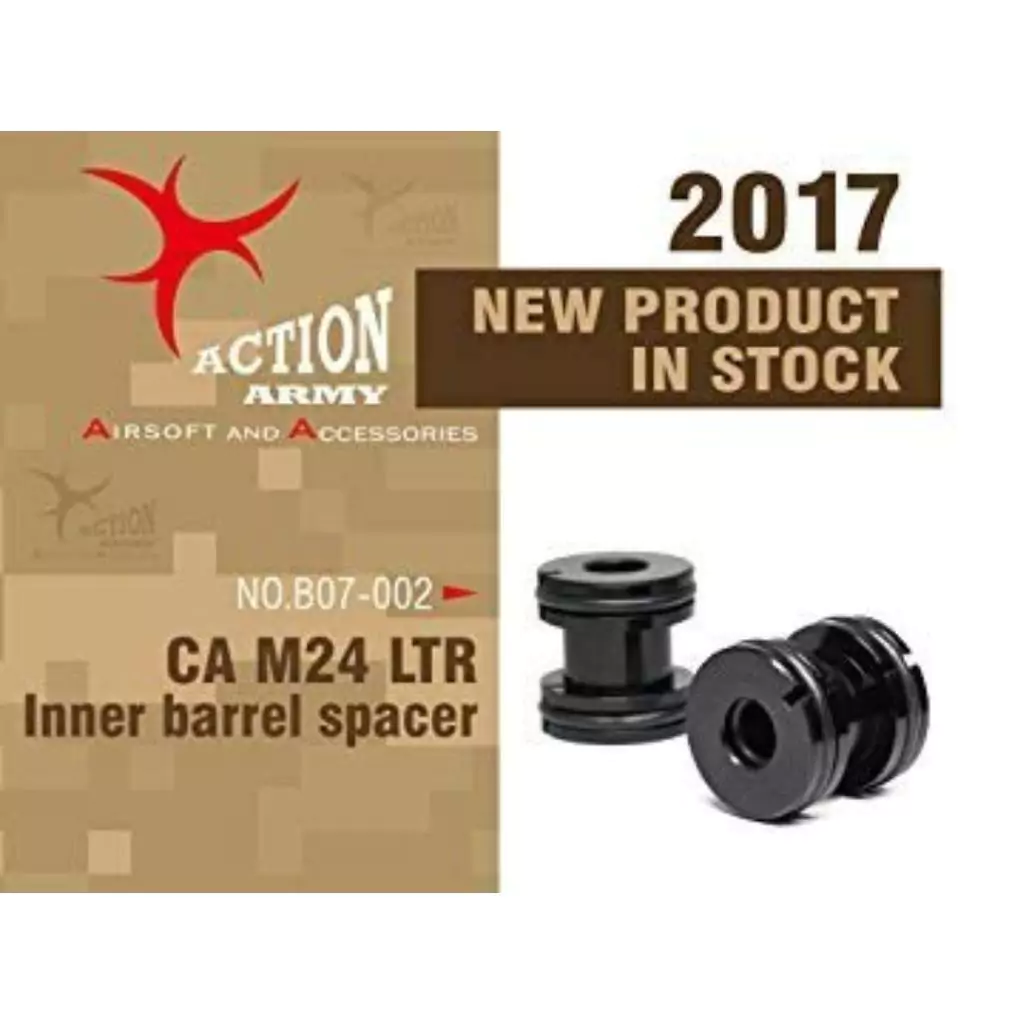 O Espaçador de Barril Interno CA M24 LTR da Action Army é uma pequena parte que faz uma grande diferença. Esta peça ajuda a apoiar o cano interno contra o interior do cano externo para evitar que ele se mova enquanto estiver em uso. Quando o pistão da arma bate à frente, e enquanto o BB viaja através do cano, o cano interno vibra, o que pode fazer com que seus tiros se desviem do curso. Essas buchas de barril preenchem o vazio entre os barris interno e externo, mantendo o barril interno estável e garantindo que suas tacadas estejam sempre no alvo.