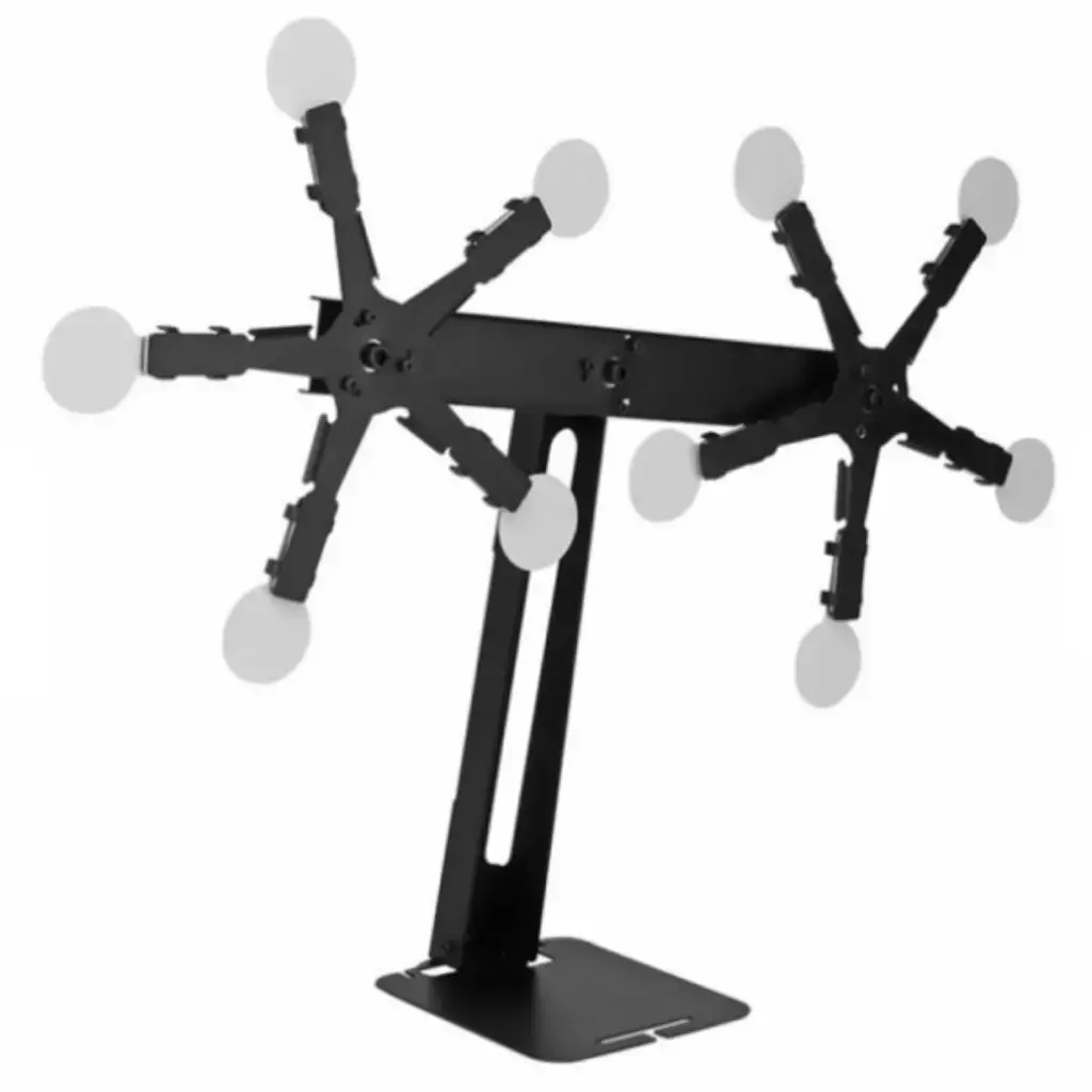 O Alvo Giratório Double Stars Rotating da Wosport é o desafio supremo para atiradores que buscam dinamismo e precisão. Equipado com duas estrelas rotativas e 10 alvos redondos de aço carbono branco, este sistema oferece um cenário de tiro complexo e interativo. Sua construção em liga de metal robusta e base sólida de 2kg garante durabilidade extrema, suportando inúmeros treinos com Airsoft, BBs e armas de pressão. Com 38cm de altura, é ideal para uso em mesas ou bancadas, proporcionando feedback visual imediato e elevando o nível da sua prática de tiro. Teste seus reflexos e garanta já o seu.