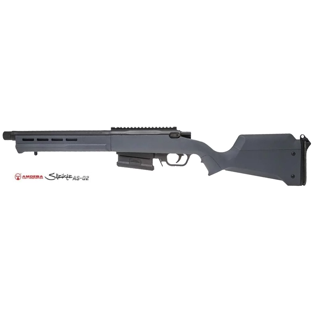 O atacante AS-02 é o seguimento para o amplamente popular Ares Amoeba AS-01. Sendo muito inspirada por rifles scout, este rifle de ação de bolt de cano curto não é apenas uma atualização em termos de aparência, mas Ares e Amoeba também refinaram algumas partes existentes. Enquanto mantinham sua ação curta, eles melhoraram a ação em si, tornando-a incrivelmente suave, mesmo após o uso extra. O gatilho é redesenhado com alavancas de 90 graus e sears. Como um toque final óbvio, eles também adicionaram um apoio para o ombro para suporte adicional, tendo que bloquear longas linhas de visão retas.