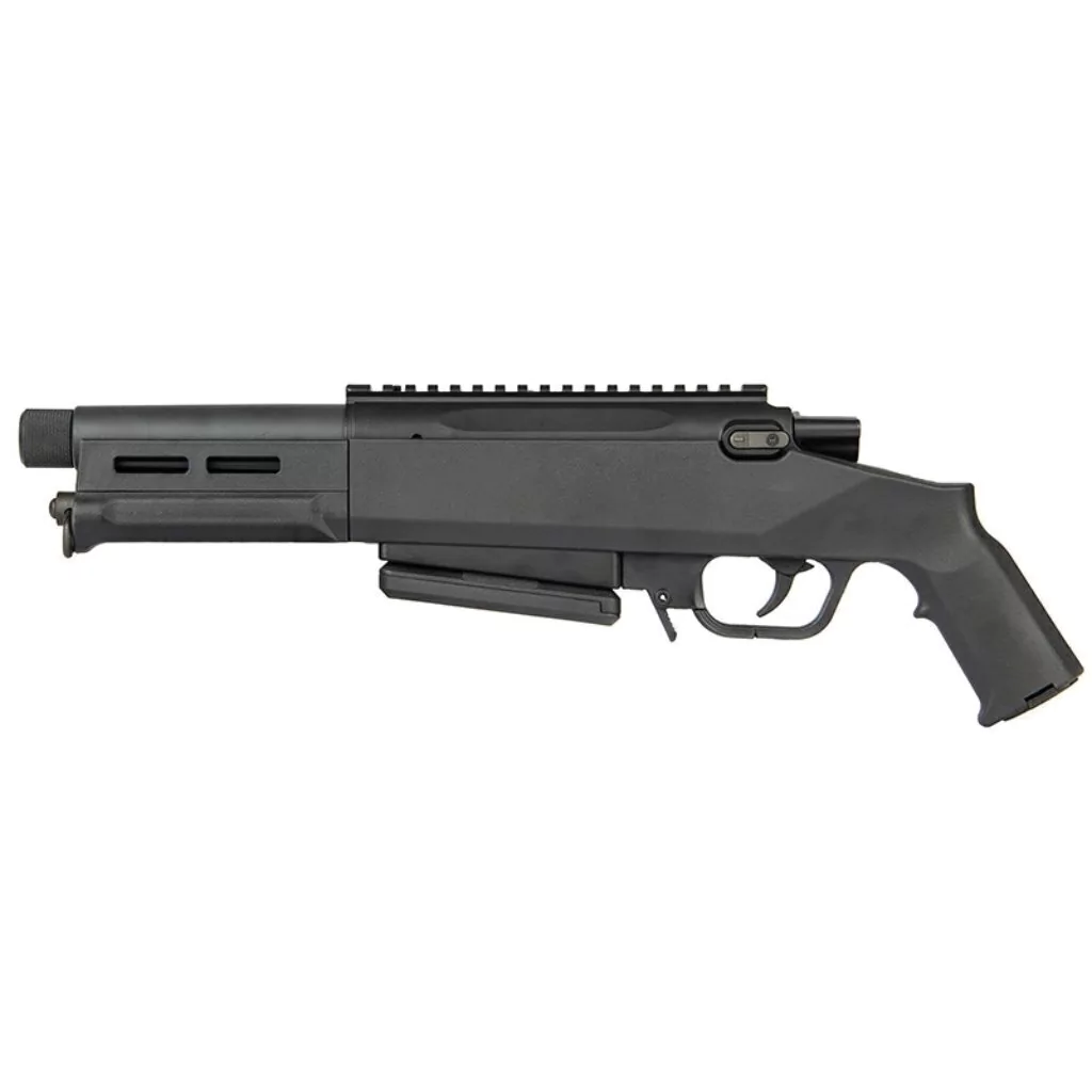 A terceira iteração do famoso rifle sniper STRIKER chega até nós em uma configuração de "pistola" ultra compacta. Esta pistola apresenta a mesma ação de golpe curto encontrada nas gerações anteriores e se baseia na ação aprimorada encontrada no STRIKER 02. Embora seu formato ultra compacto possa ser incomum, ele ainda possui precisão excepcional e toda a modularidade encontrada nas armas anteriores. Seu corpo de polímero leve torna muito leve; de fato, esta pistola pode ser disparada com as mãos, excelente para uma segunda ou terceira opção quando é necessário um único tiro de precisão