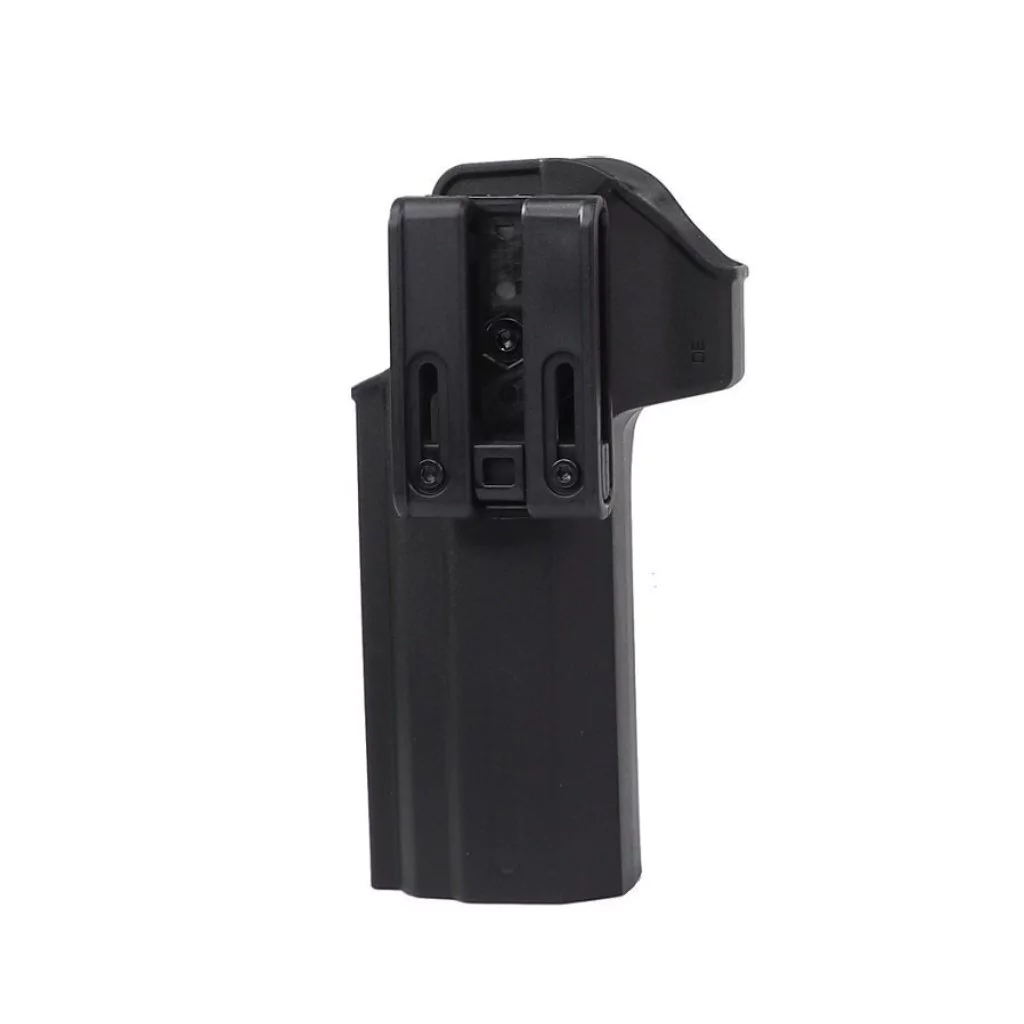 O coldre Amomax é compatível com 4 plataformas de transporte diferentes - pá (padrão), clipe para cinto, MOLLE e plataforma para perna rebatida. Todas as plataformas de transporte podem ser substituídas por apenas um parafuso. O usuário pode carregá-los no uso diário, esportes ao ar livre, treinamento de tiro normal e competição. O coldre ficará firme no cinto, na perna e no sistema MOLLE, mesmo em movimentos rápidos. Rotação de 360 graus O corpo do coldre e a plataforma de transporte são conectados a uma engrenagem dentada. O corpo do coldre tem uma rotação de 360 graus. O usuário pode ajustar facilmente a posição de transporte. Passos para ajustar a posição de transporte: 1) Afrouxe o único parafuso na parte traseira 2) Gire o corpo do coldre para ajustar a posição de transporte 3) Aperte o parafuso e conclua o ajuste. *IMAGENS MERAMENTE ILUSTRATIVAS