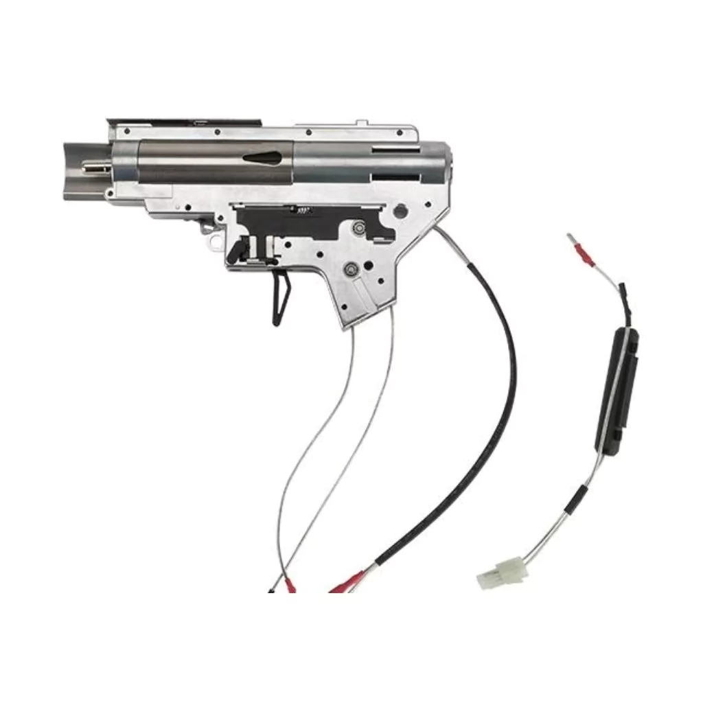 A APS aumentou a sua extensão com a caixa de velocidades "Silver Edge". Eles pegaram sua caixa de caixa de câmbio de Hyrbid e recuperaram-se completamente internamente, reduzindo eficazmente a fricção no pistão e outras peças que contatam diretamente a superfície da caixa de velocidades. Rolamentos de esferas de aço inoxidável de 8mm, um gatilho extremamente suave e um interruptor de contato com alta temperatura, guia de mola de rolamento de esferas e conjunto de engrenagens de aço são pré-instalados, permitindo uma instalação fácil e sem costura.