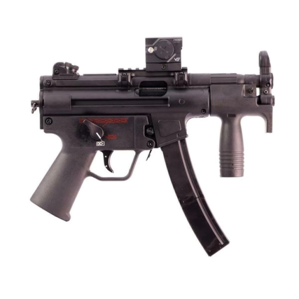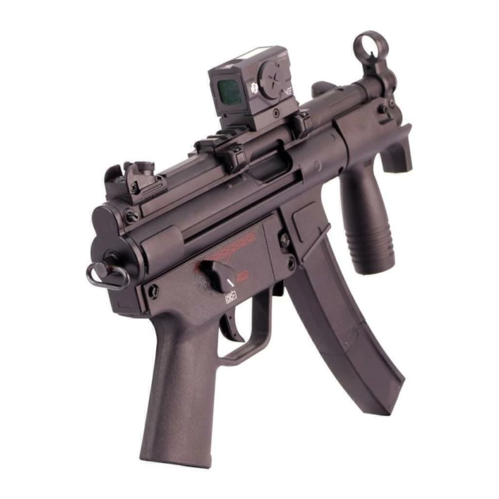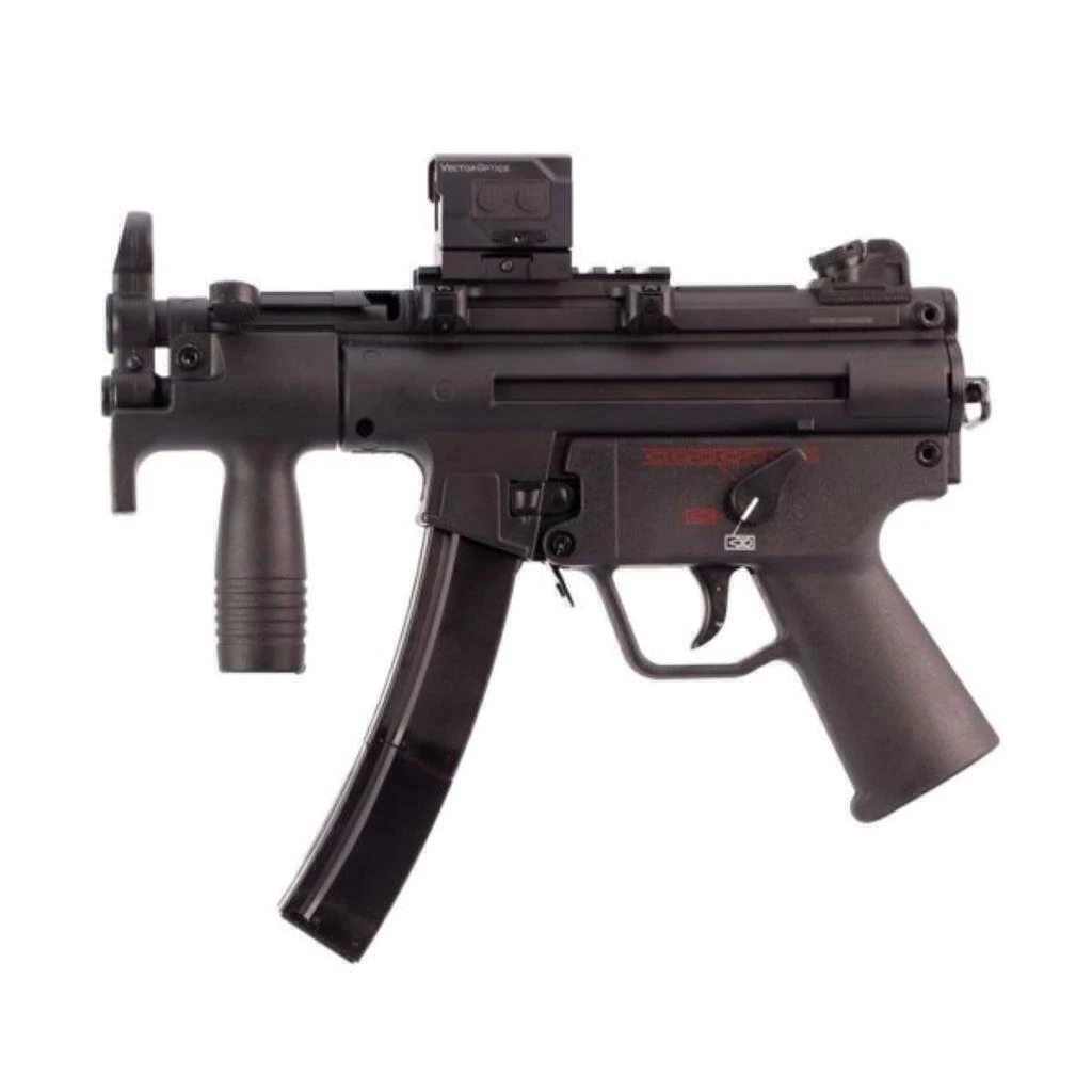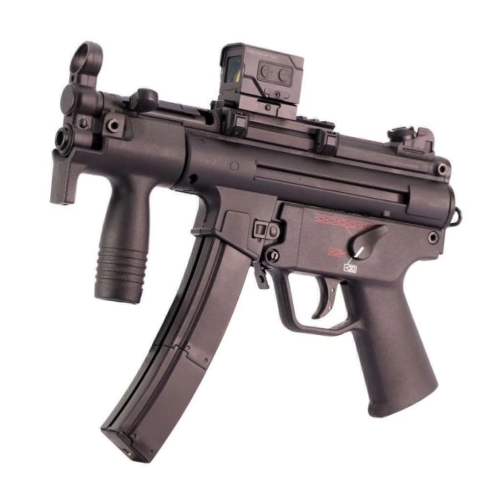SMG modelo MP5K [G55] sistema Blow Back. Todos os controles são totalmente funcionais. O acabamento externo é feito de polímero e metal. O magazine é em metal Mid-Cap que possui 22 Rounds de Capacidade.