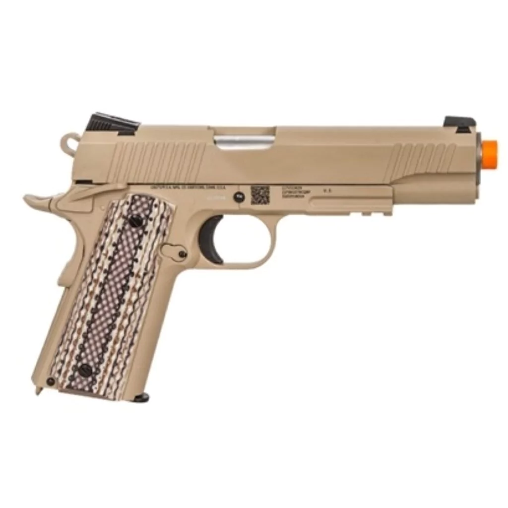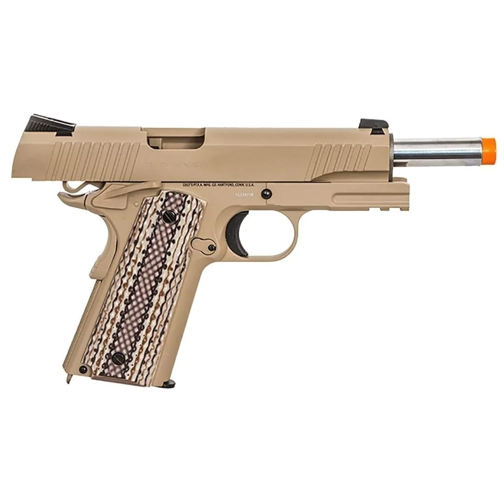 Cybergun adiciona um preço acessível Cybergun Colt M45A1, estilo MEU, Rail CO2 GBB Pistol, lançado em 2016. Você encontrará todas as marcas corretas como Cybergun nos detentores da licença da Colt.