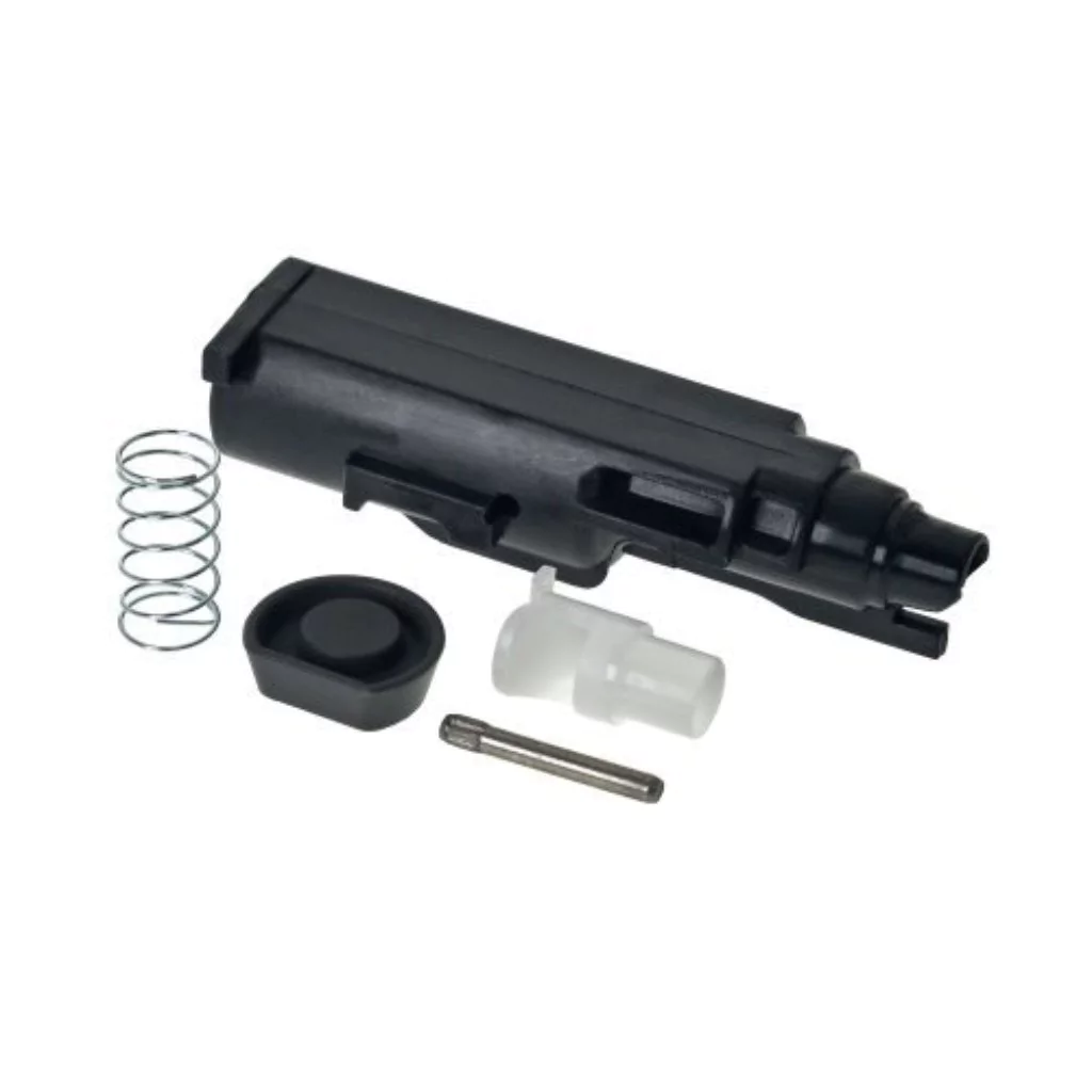 Características em destaque Construção de polímero moldado por injeção Projetado e recomendado para jogadores avançados Alta resistência ao impacto Excelente desempenho, vedação de ar e durabilidade O bloqueio de pino vale é mais durável e estável do que o design tradicional. Use uma válvula não rotativa de nova geração Incluindo plástico válvula do bico, mola da válvula, bico, trava do pino da válvula e cabeça do pistão aprimorada Para TM G18c *IMAGENS MERAMENTE ILUSTRATIVAS