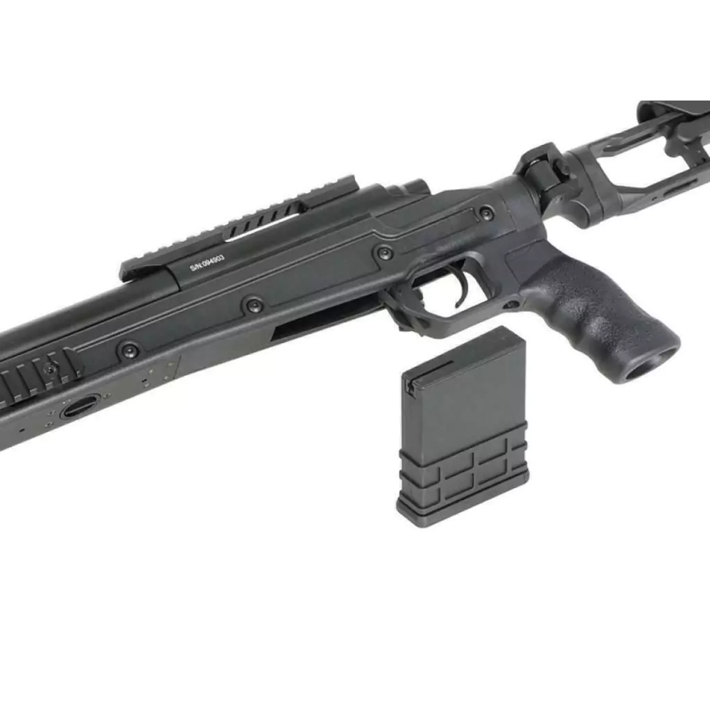 O CYMA M24 é um rifle de precisão atualizado, modelado a partir do rifle de precisão M24 usado pelos atiradores do Exército dos EUA. Este rifle também vem com um trilho de mira integrado e suporte para bipé. A estrutura de polímero de alta densidade combinada com um bolt de metal, caixa de gatilho e cano externo garante durabilidade sob uso pesado. O M24 é uma plataforma de rifle versátil, precisa e poderosa que complementa qualquer equipamento de atirador.