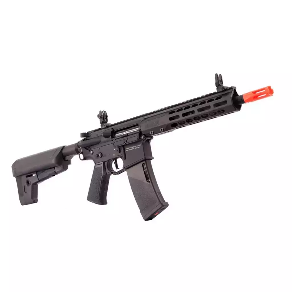 O KRYTAC MK3 REC7 SBR é um rifle de cano curto com marcas registradas Barrett totalmente licenciadas, ergonomia aprimorada e componentes internos atualizados. Ele apresenta a caixa mecânica KRYTAC Nautilus atualizada com rolamentos de alto desempenho de 8 mm e um pistão de cremalheira de metal completo com porta, complementado por um sistema FET aprimorado integrado que oferece gatilho mais rápido resposta, frenagem ativa parcial, detecção de bateria fraca e proteção de faixa de engrenagem. O MK3 REC7 SBR também possui um micro switch e-trigger e um motor neo de alto torque atualizado para atraso rápido e mínimo durante jogabilidade de ritmo acelerado. Além disso, o hop-up rotativo atualizado garante precisão consistente. O MK3 REC7 SBR continua sendo uma escolha popular para aqueles que procuram um AEG completo, perfeito para qualquer cenário de airsoft de ritmo acelerado.