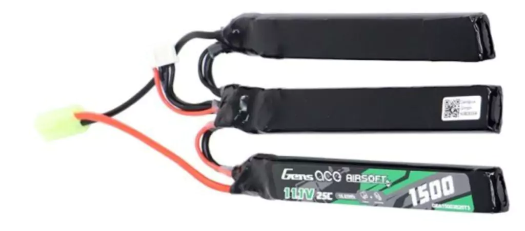 Gens ace 25C 1500mAh 3S1P 11.1V Nunchuck 3X Airsoft Gun Lipo Bateria com mini Tamiya Plug foi projetada especificamente para alimentar armas de airsoft. Adequado para a maioria dos AEG como M4, CM16 SCAR AR15 LE STOCK.