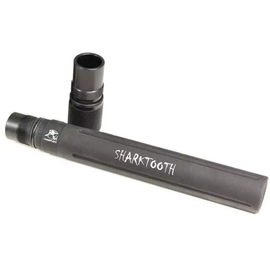 Shark ToothTM - Nosso exclusivo Shortie Rifled, Gun Drilled Barrel agora disponível em preto, ouro e prata. Pode ser usado tanto em madeiras como em cenários. O barril de Sharktooth usado com uma barbatana de spyder funciona bem com a pistola de combate Ariakon (ACP).