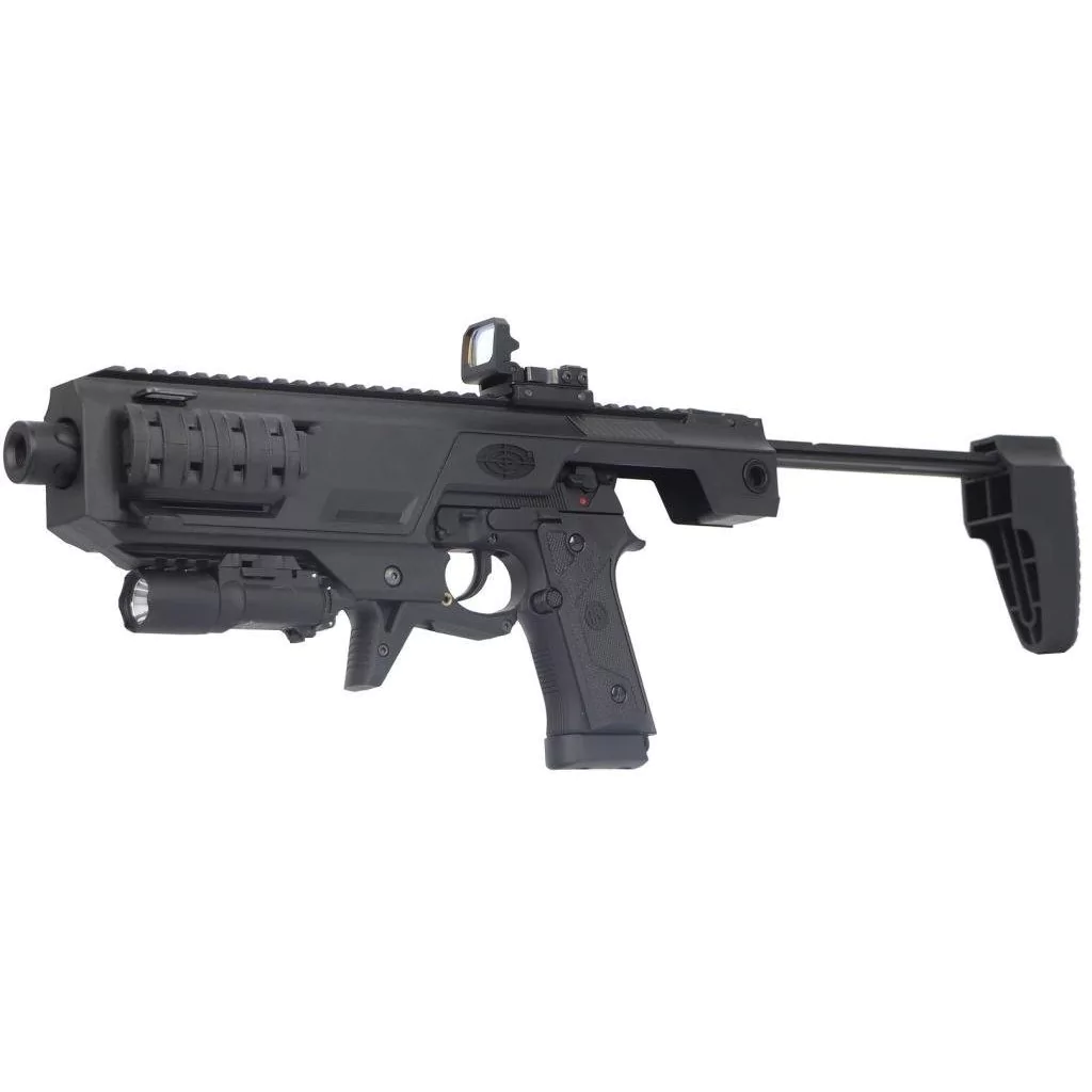 A pistola Krownland KL92 A3 de 4,5 mm (0,177) CO2 BB possui um receptor e carregador totalmente em metal para um peso e toque realistas. Esta pistola BB blowback é alimentada por um cartucho de 12g de CO2 que é mantido no carregador da pistola. O trilho Picatinny de 3 slots permite montar um laser ou lanterna. Um carregador de velocidade BB está incluído, para permitir que você recarregue seu carregador com rapidez e facilidade.