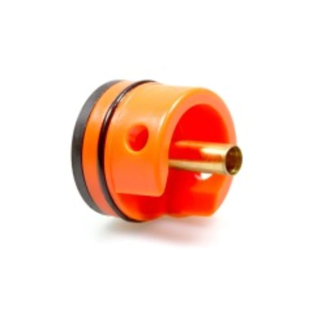 A cabeça de cilindro KRYTAC é uma construção híbrida de metal e polímero. Possui um o-ring ao redor do corpo para evitar que o ar vaze entre a cabeça do cilindro e o cilindro. A cabeça de cilindro KRYTAC também possui uma almofada de borracha densa nas costas para absorver o impacto do pistão e reduzir a vibração. O espaço adicional necessário para a almofada na cabeça do cilindro também funciona para empurrar o pistão para trás, a fim de otimizar o contato entre ele e a engrenagem do setor.