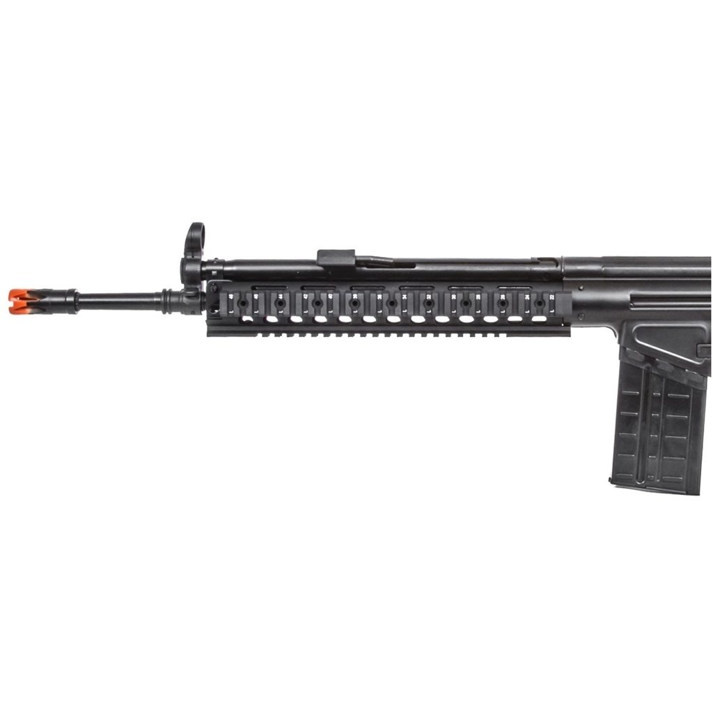 Se você já ouviu falar em LCT, provavelmente já ouviu falar que eles fazem AEGs de primeira linha. Este LC-3 não é diferente. Feitas de aço, alumínio usinado e polímero, as partes externas deste rifle são requintadas e as internas são construídas para combinar. A caixa de velocidades V2 abriga algumas peças muito duráveis, um pistão de policarbonato com uma cremalheira cheia de dentes de metal, um cilindro de latão e uma cabeça de cilindro de alumínio CNC, só para citar alguns. A unidade de elevação é um polímero durável, design rotativo e está alojada no barril externo de aço robusto. A única parte de alumínio na espingarda é o sistema Rail, e mesmo isso usa pinos de retenção de aço. O rifle é disparado a 430fps fora da caixa e emparelhado com o Hop Up rotativo e um cano interno de 515 mm, este LC-3 é perfeitamente adequado para desempenhar o papel de DMR em campo. O carregador do rifle é um interior de polímero com uma carcaça de aço na parte externa que comporta 140 balas. No geral, o LCT LC-3 é uma escolha excelente e excelente como um rifle de batalha ou construção de atirador.