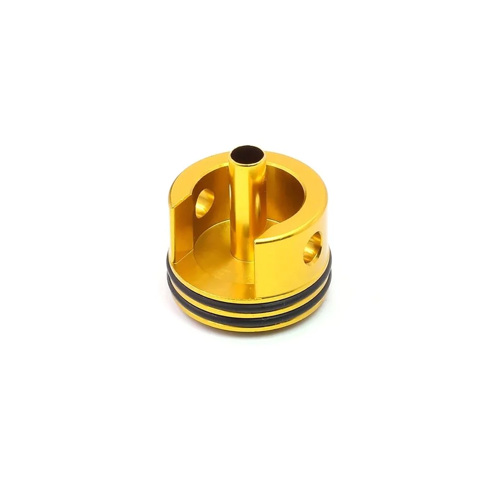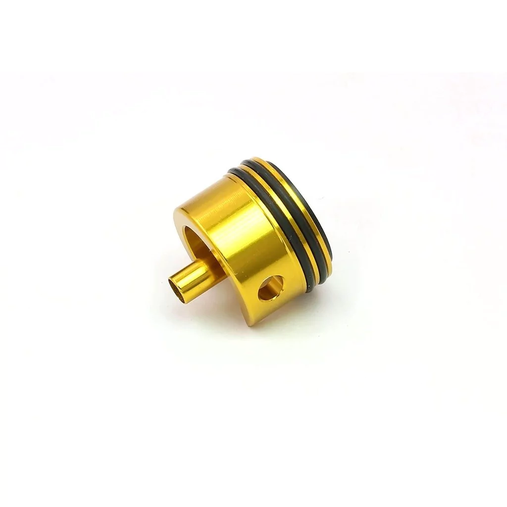 A cabeça do cilindro é metade do ciclo de compressão do conjunto do cilindro. É usado como conduto para o ar e controla o fluxo de ar para fora do cilindro. Ele permite que um volume de ar do cilindro seja comprimido através do bocal, expulsando os BBs da câmara de subida. A qualidade da cabeça do cilindro dita a estanqueidade, cuja inferioridade resulta em perda de compressão para enfraquecer a velocidade, faixa e interferência de BBs.
