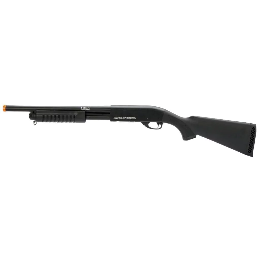 A série de espingardas S&T M870 vem com todos os recursos a um preço atraente. Essas espingardas vêm de fábrica com um receptor de metal e um conjunto de cano para melhorar o peso e a sensação realista. Internamente, as espingardas utilizam um sistema de fácil acionamento por mola, que não requer baterias ou gás para operar. As espingardas possuem poder impressionante e são capazes de fazer tiros precisos e consistentes. Os móveis dessas espingardas variam de polímero de alto impacto, imitação de grão de madeira e alumínio usinado CNC; encontre a configuração que melhor se adapte às suas necessidades.