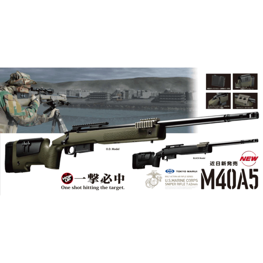 Estoque tipo Macmillan: O estoque feito de resina persegue a realidade da forma e da textura medindo o real. A bússola na parte traseira do estoque pode ser ajustada para cima e para baixo e direita e esquerda do bolt, bem como a coisa real. Ele também vem com 4 espaçadores que podem mudar a espessura da placa de morcego e você pode definir de acordo com o físico do atirador. Reproduzir aparência realista e pesada: adote materiais metálicos para peças principais que não sejam estoque, como barris exteriores, freios de foca, receptores, base de montagem, etc. Realizando uma rigidez para a textura e jogos de jovens como um capô. Operação rápida e rápida: equipado com um indicador para ver se a operação do bolt está presente de relance e um mecanismo de bloqueio da alça do bolt para evitar o funcionamento errado da alça durante o armar. Além disso, ao encurtar o curso do bolt a 68 mm, você pode operar o bolt com precisão e rapidez. Sistema de carregamento do BB: mecanismo de carregamento O sistema de carregamento do BB para a reprodução da posição real da magazine está instalado. Quando a magazine não está instalada ou quando a magazine vazia está instalada, um mecanismo de segurança que não envia balas para a câmara funciona. Sistema de gatilho: um atuador é adicionado para facilitar a compreensão da posição de liberação do cisalhamento (a posição onde a bala BB é iniciada) enquanto puxa o gatilho. Além disso, o peso do gatilho e a distância do curso podem ser ajustados de acordo com sua preferência. Montar o equipamento de base: Além da base de montagem para o site óptico, uma montagem de acessório que também é uma característica do M40A5 é um equipamento padrão. Podem ser instaladas várias peças opcionais correspondentes a uma largura de 20 mm (padrão Picatinny).