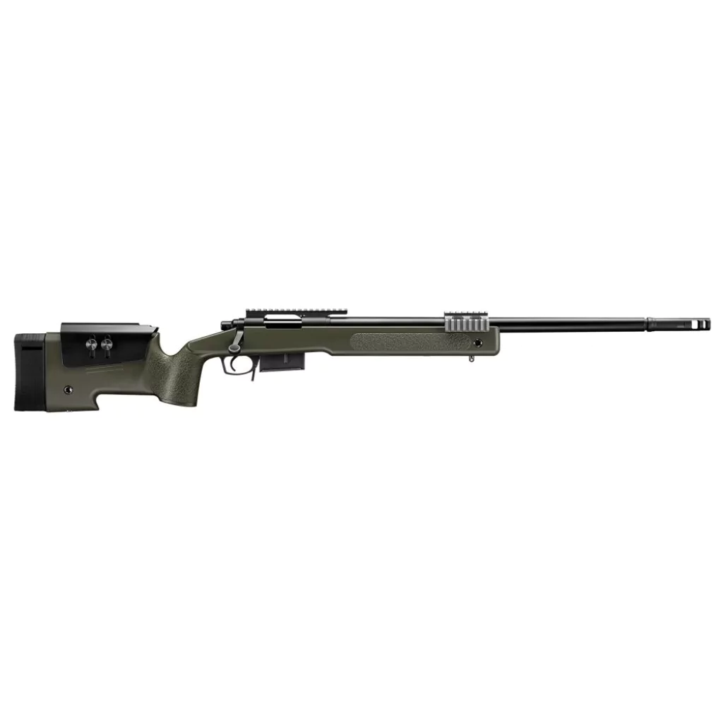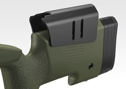 Estoque tipo Macmillan: O estoque feito de resina persegue a realidade da forma e da textura medindo o real. A bússola na parte traseira do estoque pode ser ajustada para cima e para baixo e direita e esquerda do bolt, bem como a coisa real. Ele também vem com 4 espaçadores que podem mudar a espessura da placa de morcego e você pode definir de acordo com o físico do atirador. Reproduzir aparência realista e pesada: adote materiais metálicos para peças principais que não sejam estoque, como barris exteriores, freios de foca, receptores, base de montagem, etc. Realizando uma rigidez para a textura e jogos de jovens como um capô. Operação rápida e rápida: equipado com um indicador para ver se a operação do bolt está presente de relance e um mecanismo de bloqueio da alça do bolt para evitar o funcionamento errado da alça durante o armar. Além disso, ao encurtar o curso do bolt a 68 mm, você pode operar o bolt com precisão e rapidez. Sistema de carregamento do BB: mecanismo de carregamento O sistema de carregamento do BB para a reprodução da posição real da magazine está instalado. Quando a magazine não está instalada ou quando a magazine vazia está instalada, um mecanismo de segurança que não envia balas para a câmara funciona. Sistema de gatilho: um atuador é adicionado para facilitar a compreensão da posição de liberação do cisalhamento (a posição onde a bala BB é iniciada) enquanto puxa o gatilho. Além disso, o peso do gatilho e a distância do curso podem ser ajustados de acordo com sua preferência. Montar o equipamento de base: Além da base de montagem para o site óptico, uma montagem de acessório que também é uma característica do M40A5 é um equipamento padrão. Podem ser instaladas várias peças opcionais correspondentes a uma largura de 20 mm (padrão Picatinny). Magazine realista de acabamento de imprensa: estão incluídas 35 magazines, uma magazine que adota o gabinete exterior feito de uma prensa de aço semelhante ao genuíno.
