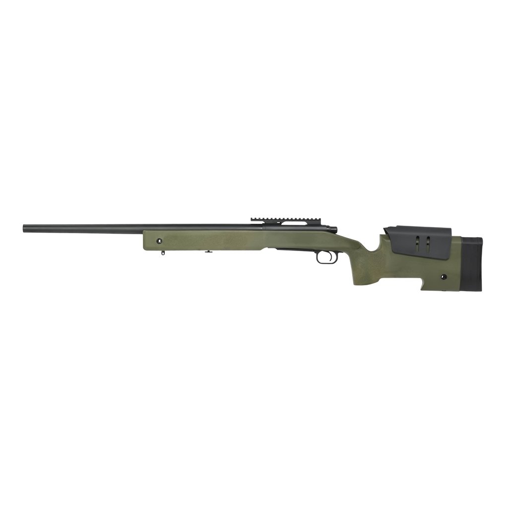 O McMillan M40A3 faz um ótimo trabalho de replicar este rifle testado e verdadeiro. Possui um estoque de polímero pesado com um receptor e cano de alumínio usinado. Internamente, o M40A3 possui uma caixa de gatilho metálico VSR-10-spec com arruelas de metal de alta qualidade e uma atração de gatilho leve. O pistão eo cilindro são compatíveis com TM VSR-10 e produzem uma impressionante velocidade de furação de 430 + FPS.