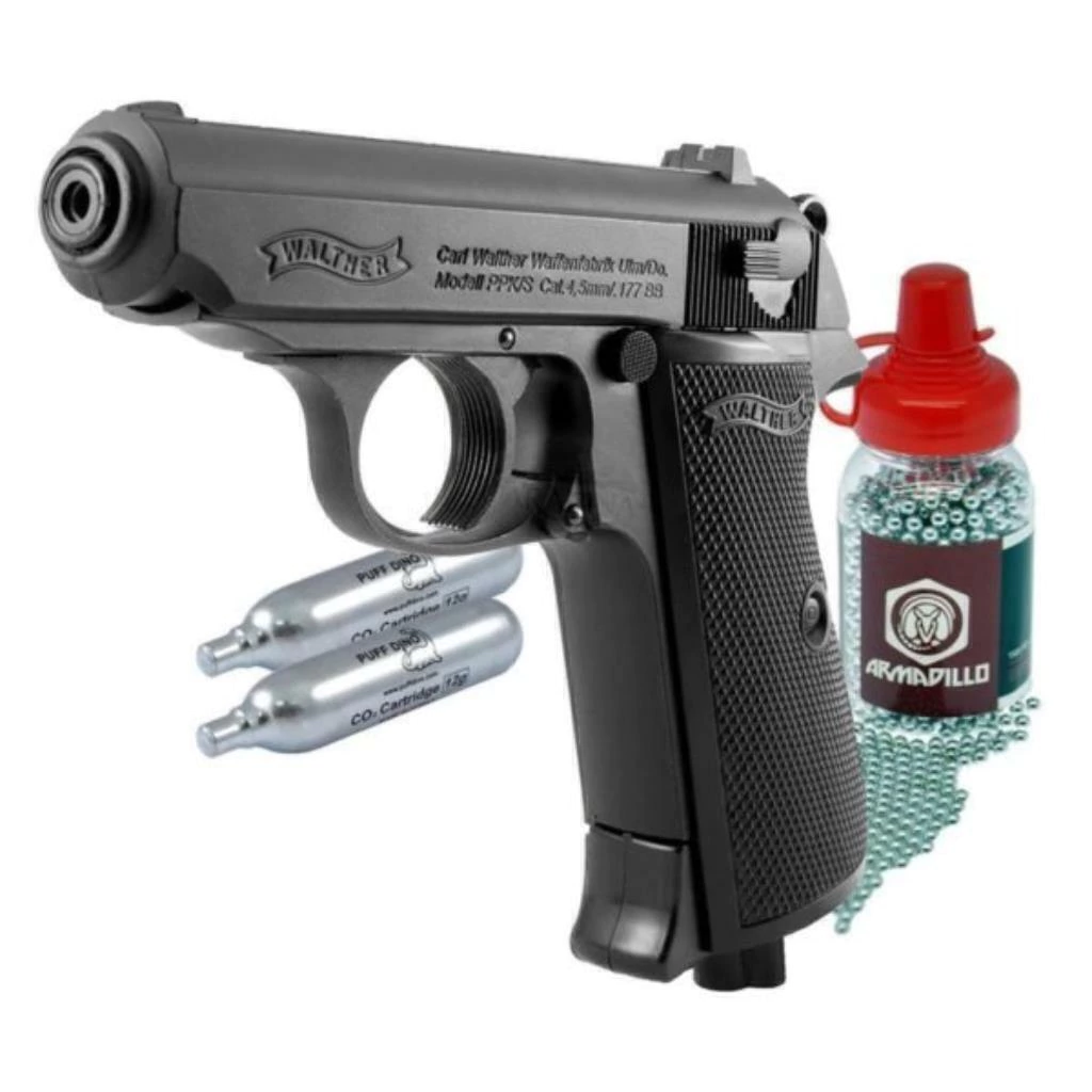 Uma das pistolas WALTHER mais populares da linha Umarex foi aprimorada: a Walther PPK/S totalmente metálica agora tem um novo mecanismo de perfuração para o cartucho de COâ‚‚ – ele fica invisível quando a arma é vista de perfil. A chave sextavada necessária faz parte da placa de empunhadura e, portanto, está sempre à mão. O slide pesado gera um efeito blowback perceptível.